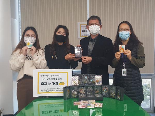 거제시사회적공동체지원센터(센터장 이규철)는 11일 거제시사회적공동체지원센터 SNS서포터즈 활동가(황승경씨)가 직접 디자인, 제작한 수공예 관광기념품 ‘바다를 품은 유자 in 거제’굿즈 25점을 기증했다고 밝혔다.