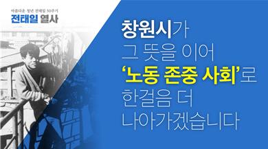 한편 창원시는 시청 대형전광판과 시 운영 양덕동 대형전광판에 “전태일 열사 50주기, 창원시가 그 뜻을 이어 ‘노동존중 사회’로 한걸음 더 나아가겠습니다”라는 메시지가 담긴 추모영상을 11월 13일과 14일 양일에 걸쳐 게시할 예정이다.