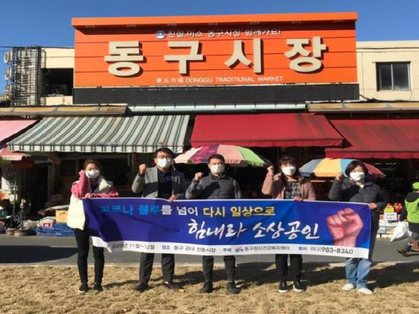 동구시장상인연합회의 협조를 받아 전통시장 5곳(동서시장, 방촌시장, 송라시장, 공항시장, 동구시장)을 방문하여 상인들을 대상으로 스트레스 및 우울 검사를 시행하고 정신건강에 대한 정보 제공과 정신건강 고위험군 대상자 발굴시 상담 및 사례관리 등 정신건강증진 서비스를 실시한다.