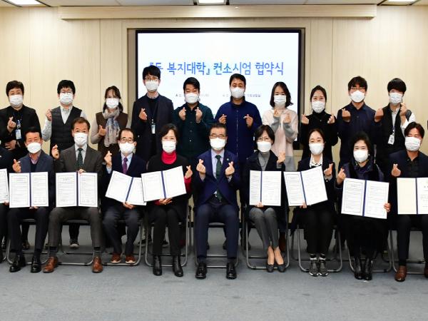 이날 구성된 컨소시엄은 ‘동 복지대학’이 운영되는 오는 2022년까지 ▲코로나19로 어려움을 겪는 주민들을 위한 특화사업 진행, ▲주민주도 동 복지의 필요성 알아가기, ▲주민이 직접 다양한 동 복지의제 발굴·실천 등 교육과정 전반에 적극적인 상호 협력을 약속했다.