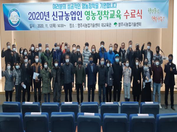 경북 영주시 농업기술센터(소장 김영주)는 지난 12일 농업기술센터 대교육관에서 ‘2020년 신규농업인 영농정착과정’ 수료식을 개최했다.