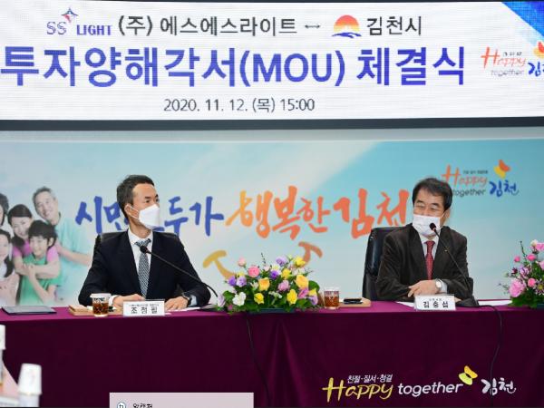 김천시는 12일 오후 3시 시청 2층회의실에서 김충섭 김천시장, 이우청 시의회 의장, ㈜에스에스라이트 조정필 대표 등 20여명이 참석한 가운데 전기자동차 배터리팩케이스(BPC) 및 완성차 생산를 위한 투자양해각서를 체결했다.