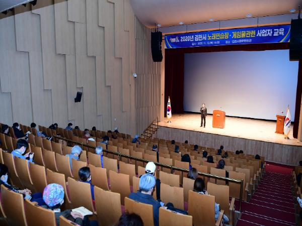 김천시는 지난 11월 12일, 김천시립문화회관 2층 공연장에서 관내 노래연습장 및 게임물 관련 사업자 100여명이 참석한 가운데 『2020년 노래연습장 및 게임물 관련 사업자 교육』을 실시했다.