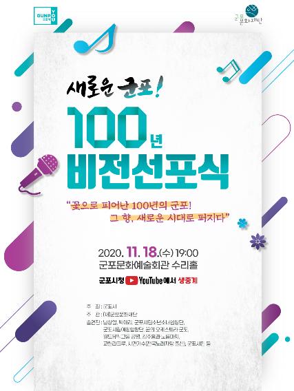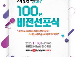 군포시가 지나온 100년 역사를 재조명하고 새로운 100년을 시민들과 함께 만들기 위한 ‘새로운 군포 100년 비전선포식’을 11월 18일 저녁 7시 군포문화예술회관 수리홀에서 개최한다.