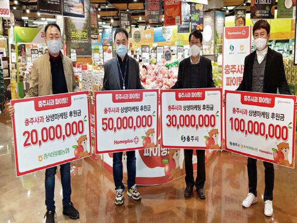 충주시는 홈플러스와 상생마케팅을 맺고 전국 홈플러스 140개 매장을 대상으로 충주사과 상생마케팅 판촉에 들어갔다.