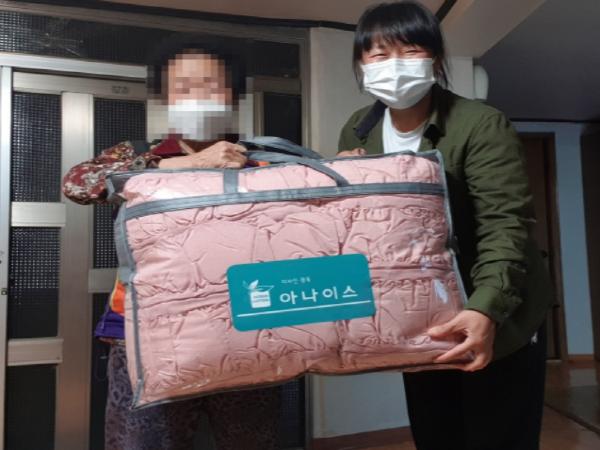따뜻한 겨울이불을 전달받은 홀몸 어르신께서는 추운 겨울이 다가옴에 걱정만 앞섰는데 이렇게 온정의 손길 주심에 감사하다며 한껏 행복한 마음을 표시했다.