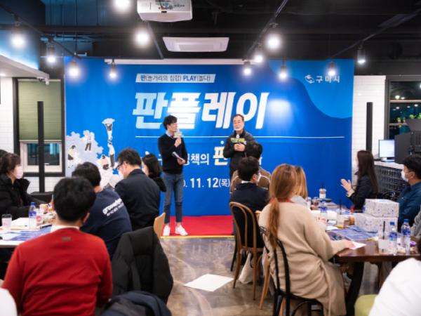 구미시(시장 장세용)는 11월 12일(목) 15:00 구미시 청년창업LAB에서 청년정책참여단, 청년정책위원 등 50여명과 함께 청년들의 목소리를 듣고 함께 공감하는「구미청년정책참여단」역량강화 워크숍을 개최했다.