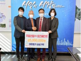 주영산업(주) 호진페인트는 지난 12일 양산시를 방문해 어려운 이웃을 위해 사용해달라며 성금 500만원을 기탁했다.
