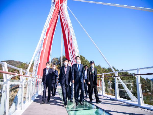 스카이워크 유리 한 장의 폭은 전국에서 가장 넓으며 유리의 경우 12mm 판을 3중으로 접합하여 아주 안전하다.