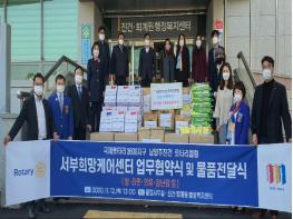 남양주시 진건로타리클럽(대표 김신애)은 지난 12일, 남양주시 서부희망케어센터(센터장 신영미)와 함께 지역사회 후원을 위한 협약식을 실시하고, 지역 내 취약계층을 위한 500만원 상당의 후원물품을 전달했다.