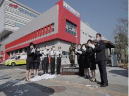 이날 제막식은 조인재 본부장, 이선영 의정부소방서장, 경기도 의용소방대 북부연합회원 등 9명이 참석했으며, 코로나19 확산 방지를 위해 최소 인원만으로 간단하게 진행됐다.