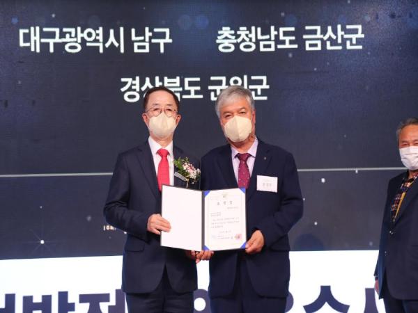 군은 지난 11일 충북 청주 그랜드플라자청주호텔에서 열린 대통령 직속 국가균형발전위원회 주최 2020년 균형발전사업 우수사례 시상식에서 우수 기관표창을 수상했다.