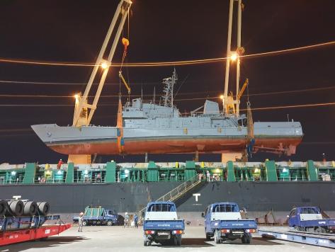 에콰도르 측에서 계약한 해운회사를 통해 이틀에 걸쳐 퇴역함정 2척을 적재한 대형 수송선은 이날 밤 마산항에서 출항해, 에콰도르 과야킬항에 12월초 도착할 예정이다.