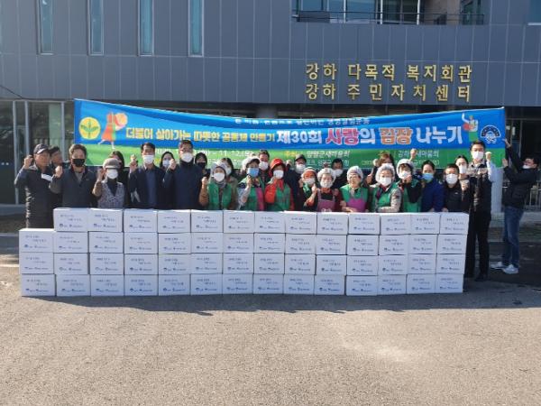 김사윤 강하면장은 “지역의 어려운 이웃분들을 위해 이른 아침부터 고생하신 새마을협의회등 봉사단체단원분들께 감사의 인사와 이번 행사를 위해 후원해주신 모든 분에게 감사드린다.”고 전했다.