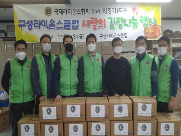 이 김장김치는 구성라이온스클럽 회원 20여명이 이날 언남동 구성라이온스클럽 회관에서 사랑나눔 김장봉사 행사를 열어 담은 것이다.