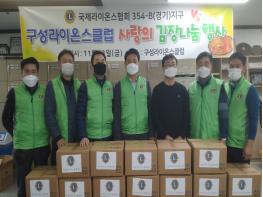 용인시 기흥구 구성동은 13일 구성라이온스클럽서 구성?보정?마북동 어려운 이웃에 전해달라며 직접 담은 김장김치 10kg짜리 10박스를 기탁했다고 밝혔다.