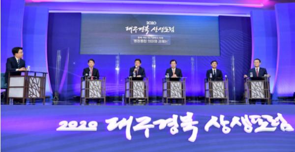 경상북도는 12일 경북도청 화백당에서 이철우 경상북도지사, 권영진 대구광역시장, 이만희 국회의원(영천?청도), 김사열 국가균형발전위원회 위원장, 지역 기관단체장, 경제계 인사 등 50여명이 참석한 가운데 ‘2020 대구경북상생포럼’을 개최했다.