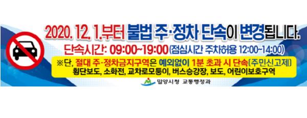 밀양시는 최근 변화된 지역 여건과 교통 환경을 반영해 12월 1일부터 불법 주·정차 단속카메라(CCTV) 운영 사항을 변경한다고 밝혔다.