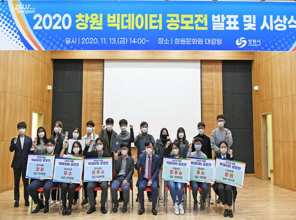 ‘2020 창원 빅데이터 공모전’에는 기획과 분석 2개 부문에 전국 55개팀이 참여하여, 관련 부서 및 외부 전문가의 평가를 거쳐 성적이 우수한 6팀을 선정하고, 11월 13일 최종 발표평가를 거쳐 시상식을 가졌다.