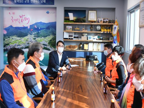 장충남 남해군수는 13일 읍·면의용소방대원들을 초청해 주택용 소방시설 설치에 나서준 데 감사함을 표했다.