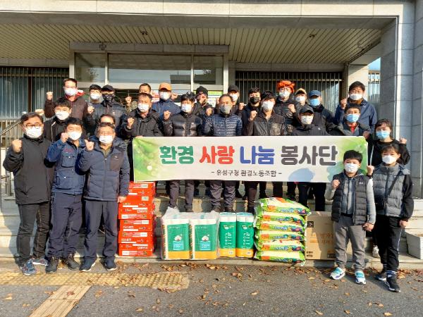 유성구 환경관리노조로 구성된 ‘사랑나눔 봉사단’은 매년 소외계층을 위한 봉사활동을 실시하고 있으며, 지난해에는 강원도 산불 이재민을 위해 라면 100박스를 기증하는 등 꾸준한 나눔활동을 이어가고 있다.