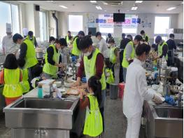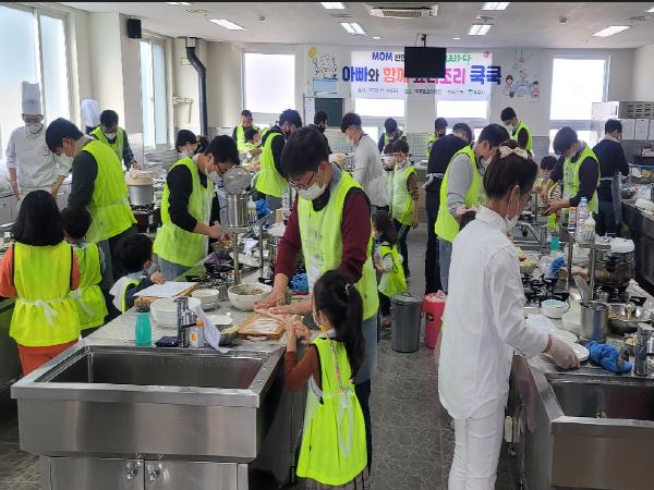 ‘코로나19’ 확산방지를 위해 발열체크, 실내 마스크 착용 등 생활 속 거리두기 지침을 준수하며 진행된 이날 행사는 아빠와 자녀가 함께 재료손질부터 각양각색 만두를 만들며 유익한 시간을 보냈다.
