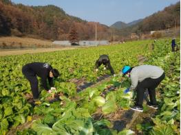일손지원에 참여한 직원들은 조를 나눠 손발을 맞추며 배추수확 등을 도왔다.