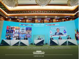 또, 대통령은 "이제 우리는 지난 23년간 쌓아온 협력의 경험을 토대로 코로나에 맞서 연대하고 협력하는 국제 공조의 모범이 되고 있다"고 말한 뒤, "코로나 아세안 대응기금, 필수의료물품 비축제도는 아세안 3가 함께 만들어낸 의미 있는 결과"라고 평가했다.