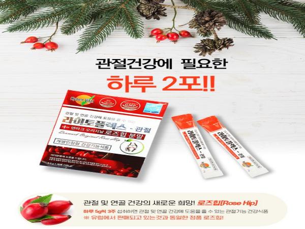 최근 관절 통증개선에 도움을 줄 수 있다고 알려진 덴마크산 로즈힙 분말은 한국에서 널리 알려지는 추세이고 로즈힙 성분이 포함된 라이토플렉스 건강기능식품이 중장년층의 겨울철 관절건강 관리 제품으로 주목받고 있다고 말했다.