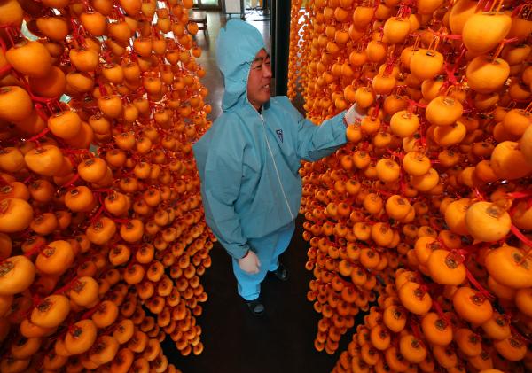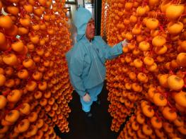 지리산 자락 산청군에서 대한민국 대표과일 ‘산청 고종시(떫은감)’로 만드는 ‘지리산 산청곶감’ 말리기 작업이 한창이다.