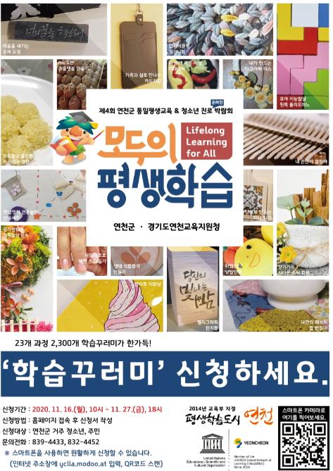 연천군 통일평생교육 & 청소년 진로 박람회는 매년 연천군과 경기도연천교육지원청이 공동으로 주최하는 행사로, 학습 결과를 발표 및 전시·판매하는 자리로 활용하고 있으며, 박람회를 찾는 주민과 청소년에게는 연천군 관내 학습 정보 습득과 다양한 학습을 체험할 수 있는 기회를 매년 제공하고 있다.