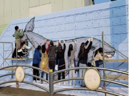 이들은 노후 되고 얼룩진 옹벽에 새끼를 낳고 젖을 먹여 키우는 포유류인 고래의 이미지를 그려 넣어 가족과 행운을 상징화한 벽화를 그린다고 했다.