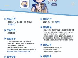 모집기간은 11월 10일부터 이달 29일까지 약 20명을 선발한다. 지원 자격은 만 18세 이상, 1개 이상의 개인 SNS를 활발히 운영 중인 사람이며 지역 제한은 없다.