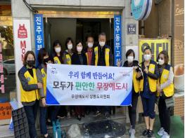 이날 무장애도시 위원 등 10여명은 개인 사업장에 경사로 판을 설치하고 코로나 예방을 위한 사회적 거리두기 준수와 제2기‘모두가 함께하는 무장애 공감 도시’를 위한 사업 활동 등을 함께 홍보하였다.