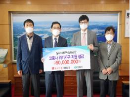 창원시는 16일 오전 10시 30분 접견실에서 동서식품(대표이사 이광복)이 코로나로 어려움을 겪는 시민을 위해 성금 5000만 원을 기탁했고 밝혔다.
