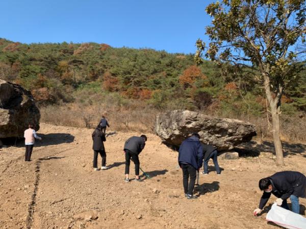 16일 아산면에 따르면 아산면 학전리 깨진바위 주변에 감춰져 있던 고인돌 6기를 발견해 도로변 잡목을 제거하고, 관련 부서에 알렸다.