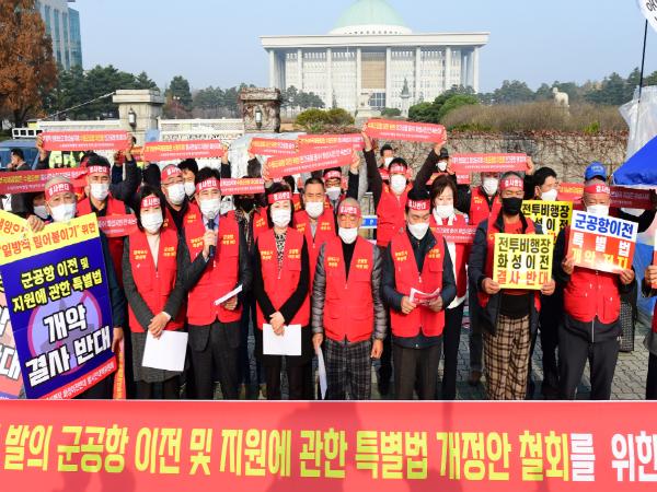 최근 개정안이 국회 국방위원회 법률안심사소위원회에 회부되자, 참석자들은 성명서를 통해 “개정안은 비(非)민주˙반(反)헌법˙국민 분열 법안으로, 군공항 종전부지의 입장만 고려하고 이전부지의 일방적인 희생만을 강요하는 개악 법안”이라고 성토했다.