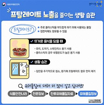 프탈레이트는 플라스틱을 부드럽게 만드는 가소제로 사용되므로, 가소제가 사용된 기구 용기 등은 100℃를 초과하지 않도록 사용하고, 뜨거운 음식은 유리, 도자기, 스테인리스 용기나 내열온도가 높은 플라스틱 용기에 담는 것이 좋다.