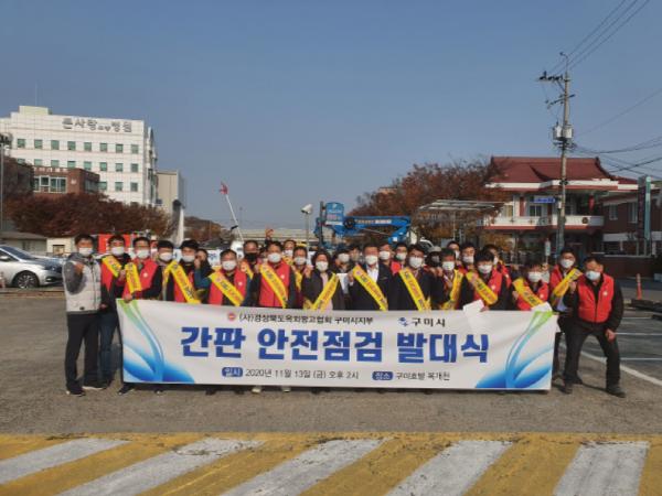 구미시에서는 11월 13일(금) 14시부터 원평동 복개천 주차장에서 옥외광고협회 회원을 비롯, 공무원 등 30여명이 참석한 가운데 ‘옥외간판 안전점검사업 발대식’을 가졌다.