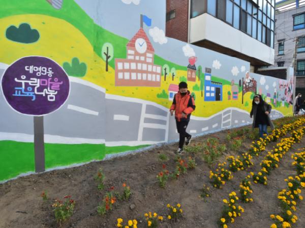 대구광역시 남구 대명9동 우리마을 교육나눔추진위원회에서는 지난 14일, 마을 청소년과 주민이 함께 완성한 마을벽화를 선보이는 오픈행사를 개최하였다.