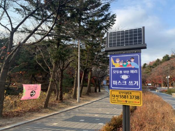 이밖에도 서울대공원에는 태양열을 이용한 종합안내판을 비롯하여 다양한 LED 조명 간판이 설치되어 있으며, 둘레길에 재미있는 문구의 현수막들로 코로나 생활수칙을 안내하고 있다.
