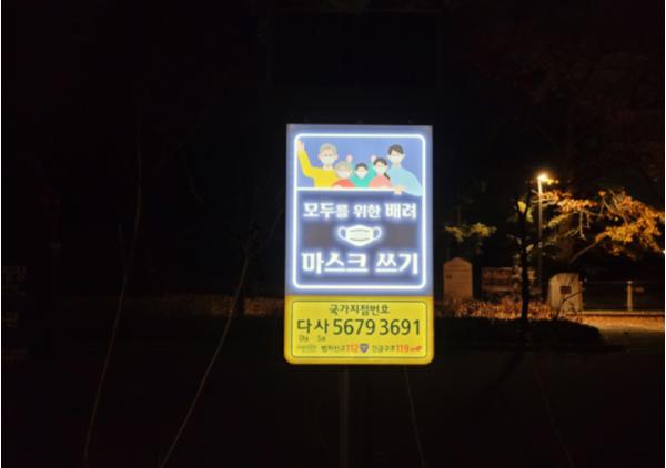 서울대공원에서 설치한 국가지점번호판은 야간에도 식별이 가능하도록 조명 대신 태양열을 이용해 효율적으로 번호판이 잘 보이도록 했다. 더불어 이번 설치한 국가지점번호판에는 코로나19 일상화에 따른 생활 속 마스크쓰기 독려 문구도 함께 넣어 시민들이 야외공원 이용시에도 보건수칙을 잘 지키도록 했다.