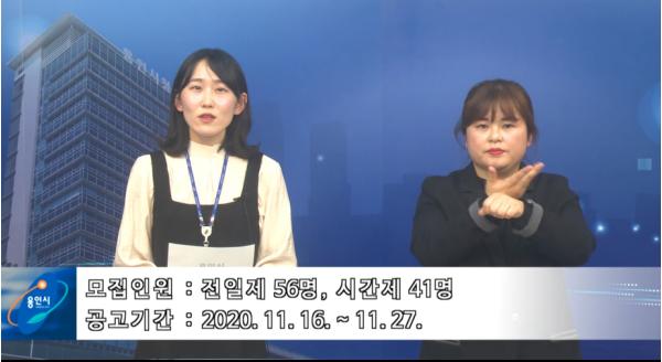 용인시는 장애인들이 일자리 정보를 쉽게 확인할 수 있도록 2021년도 장애인일자리사업 채용공고에 수어, 자막, 음성을 포함한 동영상 채용공고를 제작해 16일부터 27일까지 공고문과 함께 게시한다.