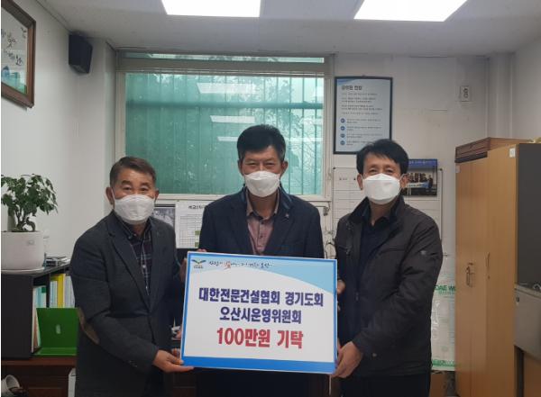 오산시 초평동행정복지센터(동장 임두빈)은 지난 11월 13일 대한전문건설협회 경기도회 오산시운영위원회(위원장 김종택)에서 행정복지센터를 방문해 소외되고 어려운 이웃을 위해 써달라며 성금 100만원을 기탁했다고 밝혔다.