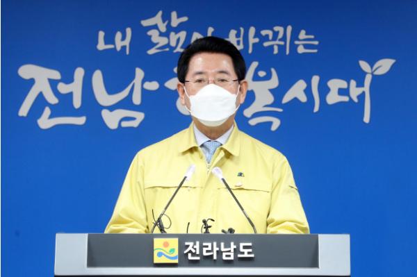 김영록 전라남도지사는 16일 “최근 감염 경로가 밝혀지지 않은 확진자가 많아 사회적 거리두기 단계를 높여야 하는 어려운 상황이 올수 있다”며 “도민 모두 경각심을 갖고 방역에 동참해 줄 것”을 호소했다.