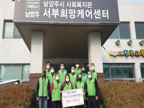 남양주시 봉사단체인 남우회(회장 박희현)는 지난 15일 서부권역 동절기 난방취약계층 3가구에 각 400장씩 총 1,200장의 연탄을 서부희망케어센터를 통해 전달했다.