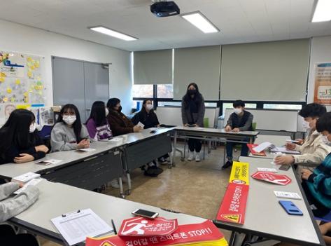 스마트미디어 선용문화를 확산시키고자 진행된 이번 활동은 보행 및 운전중 스마트폰 사용에 따른 횡단보도 및 보도블럭 사고 예방을 위한 안전지킴 캠페인으로 청소년들이 직접 안전 문구를 기획하였으며, 지역사회의 번화가를 탐색하여 캠페인 장소를 홈플러스 및 지평선 학당 사거리로 선정하는 등 지역사회 변화를 위해 직접 노력했다.