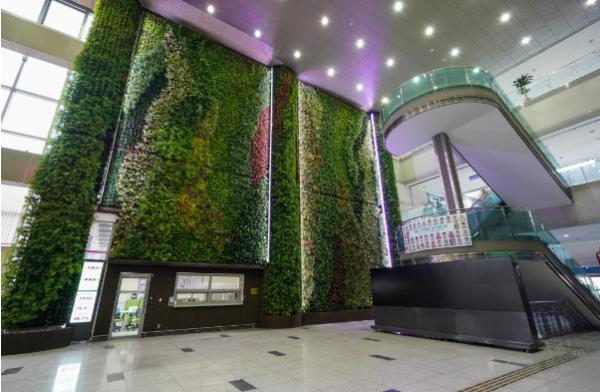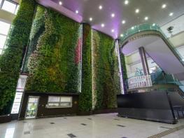 녹화구간 중 가장 큰 면적을 차지하는 당직실 벽면 248㎡ 규모에는 테이블야자 등 10종 1만 4000여본이 심어져 사계절실내습도절과 푸름을 선사한다.