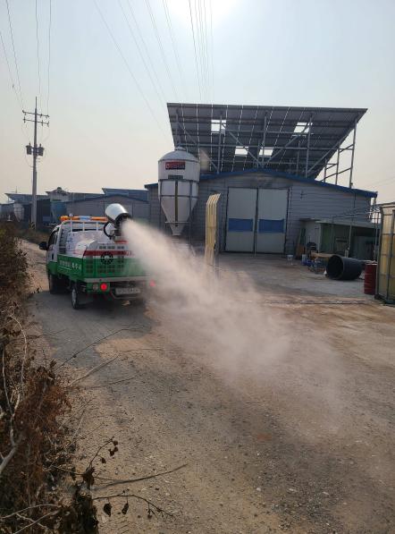 아울러 광역방제기 2대, 방역차량 3대, 살수차 1대, 드론 2대를 동원하여 복하천과 이동제한지역 양계농가 주변을 일일 1회 이상 소독을 실시하고 있다.