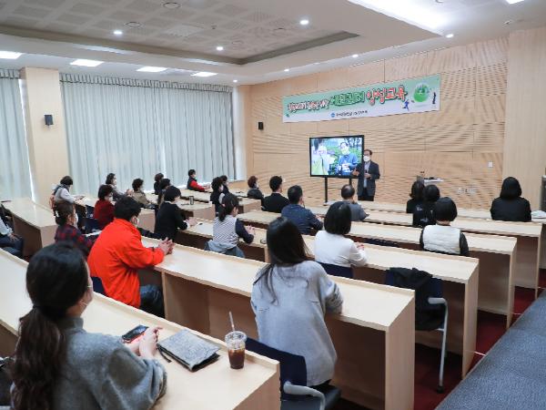 조광한 남양주시장이 16일 정약용도서관 3층 세미나실에서 열린 ‘생활쓰레기 감축을 위한 에코리더 양성교육’에서 환경 특강을 실시했다.